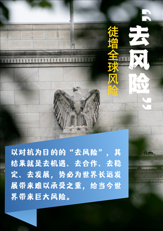 以“去風險”之名行“去中國化”之實,企圖拉攏盟友打造排除中國的“平行體系”,這種分裂世界的做法,不僅會給深度交融的全球經(jīng)濟帶來巨大風險,也會擾亂全球經(jīng)濟治理,阻礙眾多全球共同議題深入推進。“去風險”為經(jīng)濟、技術、思想、文明交流人為設障,破壞各國相互信任基石,世界有可能重陷“冷戰(zhàn)”泥沼,諸如消除不平等和貧困、共同應對氣候變化等需要國際社會攜手推進的進程也將被拖累。