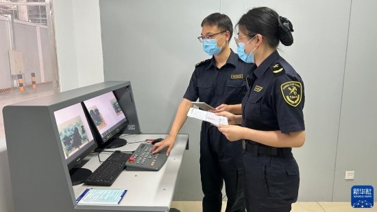 8月2日,中國(guó)鄭州機(jī)場(chǎng)海關(guān)關(guān)員用X光機(jī)對(duì)進(jìn)口貨物開(kāi)展非侵入式查驗(yàn)。新華社發(fā)(鄭州機(jī)場(chǎng)海關(guān)供圖)