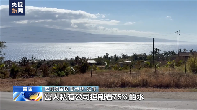 拉海納居民 凱卡伊·克海:每年夏天的時候,因為沒有足夠的淡水資源,我們原住民都面臨用水限制,所有的普通民眾都要限制用水??稍谀切┧饺颂貦?quán)地區(qū)、度假酒店里的高爾夫球場,一切用水都是正常的。我們多年來一直在討論這個不平等的問題,富人私有公司控制著75%的水,我們當?shù)孛癖娭挥?5%的水,所以你不能說沒有水就是我們的責(zé)任,這不是我們的問題。