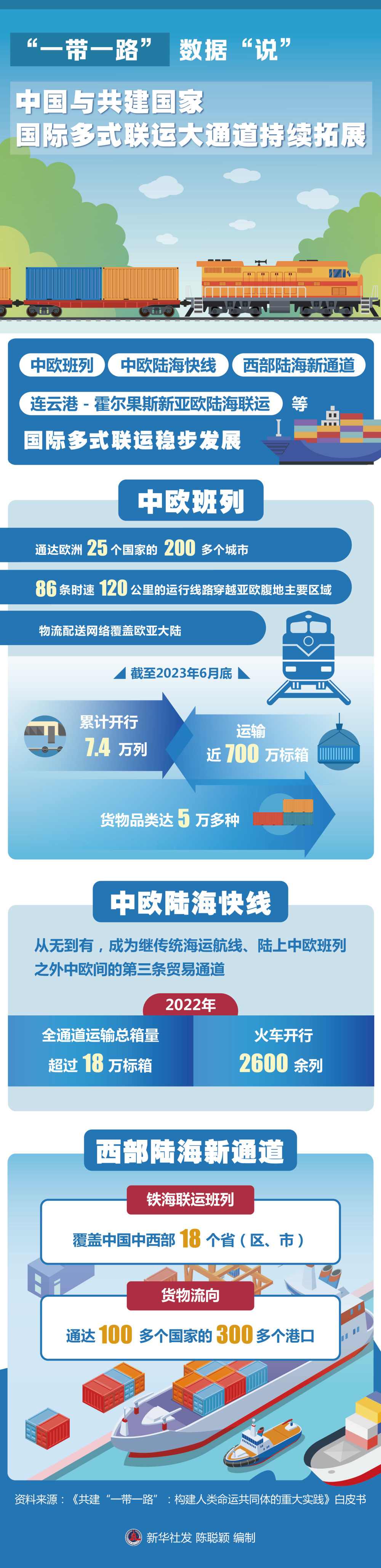 國際多式聯(lián)運(yùn)大通道持續(xù)拓展。中歐班列、中歐陸??炀€、西部陸海新通道、連云港-霍爾果斯新亞歐陸海聯(lián)運(yùn)等國際多式聯(lián)運(yùn)穩(wěn)步發(fā)展。中歐班列通達(dá)歐洲25個(gè)國家的200多個(gè)城市,86條時(shí)速120公里的運(yùn)行線路穿越亞歐腹地主要區(qū)域,物流配送網(wǎng)絡(luò)覆蓋歐亞大陸;截至2023年6月底,中歐班列累計(jì)開行7.4萬列,運(yùn)輸近700萬標(biāo)箱,貨物品類達(dá)5萬多種,涉及汽車整車、機(jī)械設(shè)備、電子產(chǎn)品等53大門類,合計(jì)貨值超3000億美元。中歐陸??炀€從無到有,成為繼傳統(tǒng)海運(yùn)航線、陸上中歐班列之外中歐間的第三條貿(mào)易通道,2022年全通道運(yùn)輸總箱量超過18萬標(biāo)箱,火車開行2600余列。西部陸海新通道鐵海聯(lián)運(yùn)班列覆蓋中國中西部18個(gè)?。▍^(qū)、市),貨物流向通達(dá)100多個(gè)國家的300多個(gè)港口。