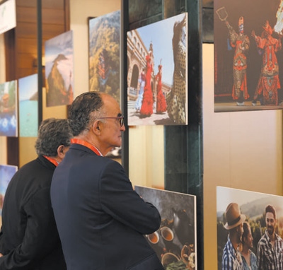 旅游是不同國家、不同文化交流互鑒的重要渠道。在中國西班牙文化和旅游年框架下,相關(guān)活動為推動中西及中歐人文交流、旅游合作發(fā)揮積極作用。圖為7月3日,外方嘉賓在位于西班牙首都馬德里的活動現(xiàn)場觀看中國旅游宣介圖片。