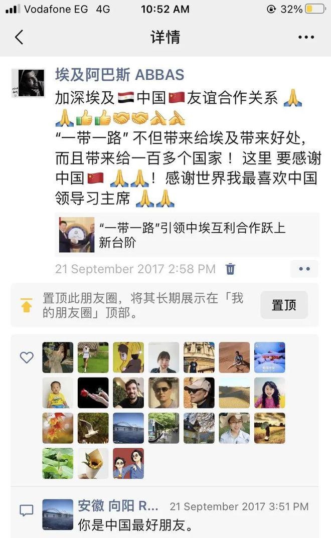 “習(xí)近平主席說(shuō)過(guò):‘國(guó)之交在于民相親,民相親在于心相通?!挥忻裥南嗤?,才能互相幫助、互相支持。如果形同陌路,我們還能談什么?如果相互心存芥蒂,我們還能做什么?”最近,阿巴斯正在研究一個(gè)中文詞:鏈接?!巴瑸槲拿鞴艊?guó),埃及和中國(guó)早在2000多年前就有了友好交往,這是歷史上的‘鏈接’。中國(guó)提出共建‘一帶一路’倡議,這是當(dāng)代的‘鏈接’,讓古老的絲綢之路煥發(fā)新的光彩。中國(guó)積極與世界各國(guó)攜手合作、互利共贏,在近期動(dòng)蕩的國(guó)際環(huán)境下,相信人們會(huì)更加理解共建‘一帶一路’倡議的價(jià)值和內(nèi)涵。”