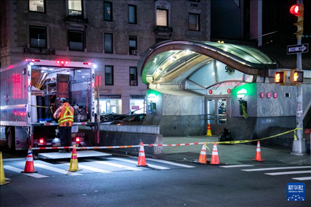 1月4日,在美國(guó)紐約,工作人員在列車(chē)脫軌事故現(xiàn)場(chǎng)外工作。新華社發(fā)(郭克攝)