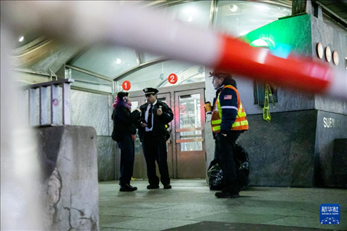 1月4日,在美國(guó)紐約,警察引導(dǎo)一名乘客換乘其他交通工具。新華社發(fā)(郭克攝)