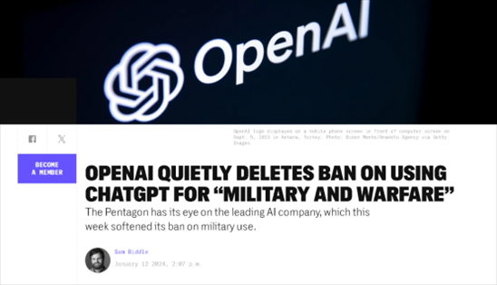 “在人工智能系統(tǒng)正被用于針對加沙地區(qū)的平民時,OpenAI決定將禁止軍事和戰(zhàn)爭用途文字從其使用條款中移除,是值得關(guān)注的”,一位專家對“攔截者”網(wǎng)站這樣說道。