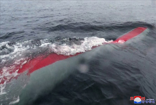 朝鮮官方公開的“海嘯”的核無人潛水攻擊艇照片。