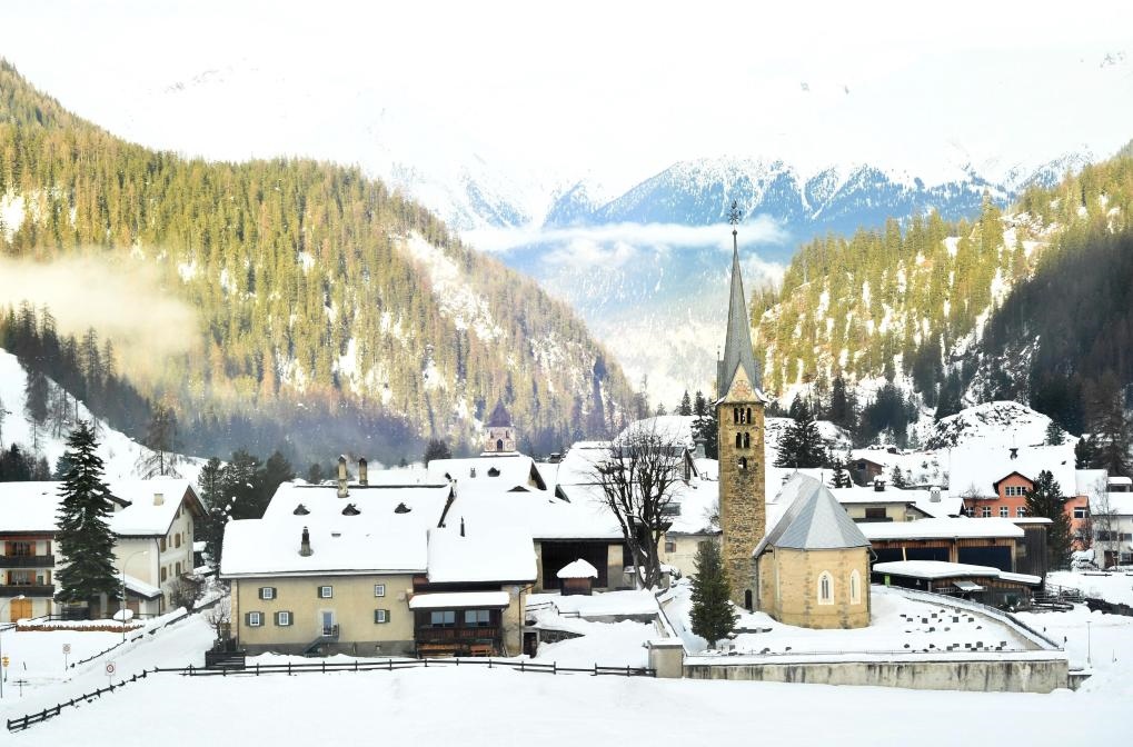 這是1月18日在瑞士東部圣莫里茨通往達(dá)沃斯的火車上拍攝的窗外雪景。新華社記者 連漪 攝