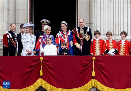 2023年5月6日,凱特王妃(中)在英國倫敦參加英國國王查爾斯三世的加冕儀式后,在白金漢宮陽臺上與民眾見面(資料照片)。新華社記者 李穎 攝