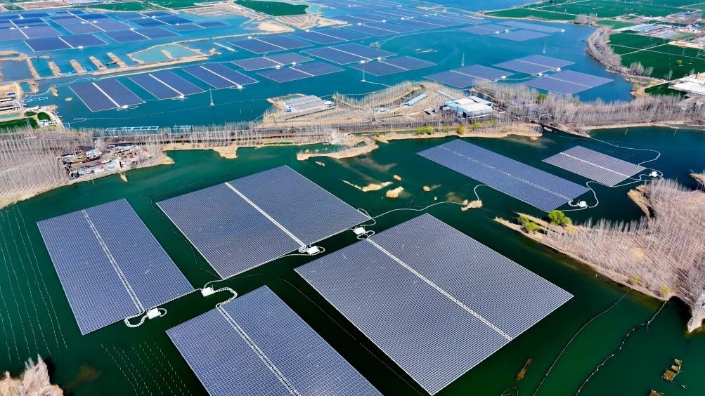 ?這是山東省濟寧市微山縣驩城鎮(zhèn)利用采煤塌陷區(qū)約3600畝水面建設(shè)的漁光互補項目(2024年3月20日攝,無人機照片)。該項目集光伏發(fā)電、漁業(yè)養(yǎng)殖、生態(tài)修復(fù)于一體。新華社記者郭緒雷攝