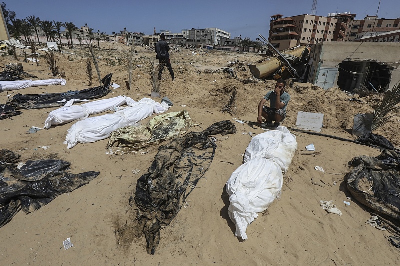 巴勒斯坦加沙地帶民防部門說,自當?shù)貢r間4月19日以來,在以色列軍隊撤離后的汗尤尼斯市納賽爾醫(yī)療中心發(fā)現(xiàn)近300具尸體。