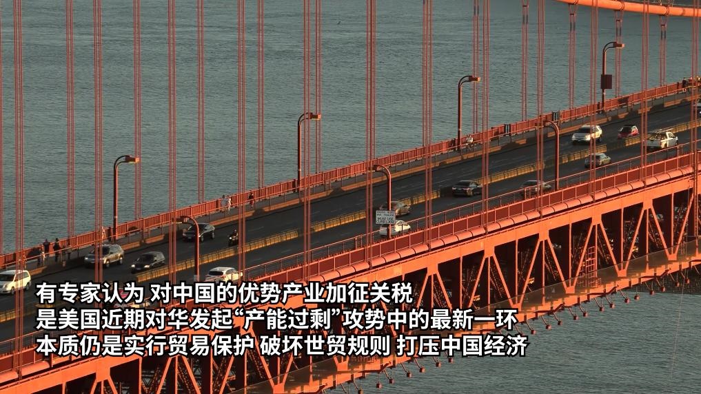 美國(guó)政府14日宣布,將對(duì)中國(guó)電動(dòng)汽車等產(chǎn)品加征關(guān)稅。有專家認(rèn)為,這是美國(guó)近期對(duì)華發(fā)起“產(chǎn)能過(guò)?!惫?shì)中的最新一環(huán),本質(zhì)仍是實(shí)行貿(mào)易保護(hù),破壞世貿(mào)規(guī)則,打壓中國(guó)經(jīng)濟(jì)。