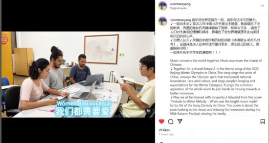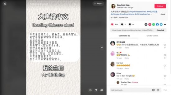 來自老撾的楊世群、菲律賓的黃玉潔、布隆迪的田曉慧和墨西哥的楊衍輝等老師,還分享了各種學(xué)習(xí)中文的有趣方法,例如情景演繹、唱歌學(xué)中文、跟讀練習(xí),獲得了網(wǎng)友們的一致好評(píng)。