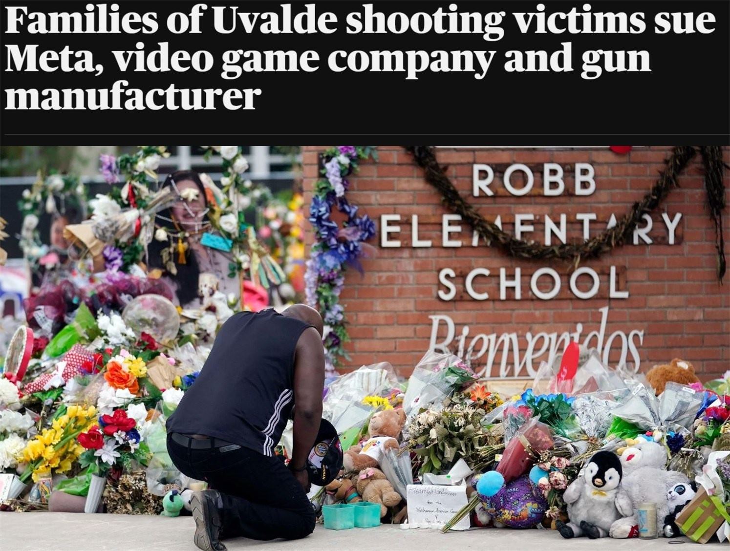 24日當(dāng)天,他們又把相關(guān)的槍支制造商丹尼爾防務(wù)公司、電子游戲制造商動(dòng)視公司以及社交媒體巨頭“元”公司告上法庭。