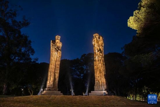 這是5月28日在烏拉圭首都蒙得維的亞市中心的巴特列公園拍攝的雕塑作品《問道》。新華社發(fā)(陳曦攝)