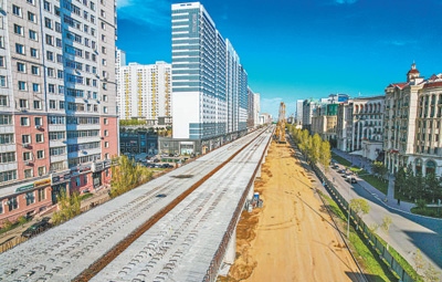 正在建設(shè)中的輕軌118車站連通著阿斯塔納新火車站,建成后將實現(xiàn)輕軌與新火車站便捷換乘。