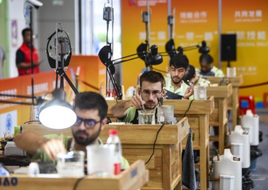 6月24日,第二屆“一帶一路”國際技能大賽咖啡制作項目選手在比賽中。新華社記者王全超 攝