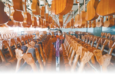 這是今年娜塔莎樂(lè)器公司發(fā)往日本客戶的第三批貨,大約300把?!懊堪鸭詈蟮馁|(zhì)檢流程需要20分鐘左右,我們要確保每一把吉他的質(zhì)量?!惫拘姓鞴茼f林飛說(shuō)。2019年,受當(dāng)?shù)卣猩桃Y政策的吸引,娜塔莎樂(lè)器公司落戶貴州遵義市正安縣。如今,公司已建成一個(gè)頗有名氣的自主品牌。