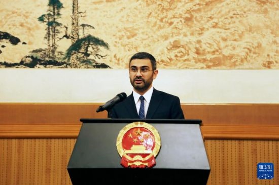 9月26日,阿塞拜疆政府副總理沙欣·穆斯塔法耶夫在巴庫(kù)舉行的慶祝中華人民共和國(guó)成立75周年招待會(huì)上致辭。新華社發(fā)(巴巴耶夫攝)