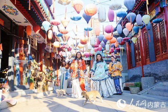 大盛魁博物館整體建筑風(fēng)格為清末民國至上世紀(jì)40年代歸化城(今呼和浩特市)街區(qū)風(fēng)貌。外媒記者“小姐姐”們現(xiàn)場“換裝”,體驗(yàn)各式中華傳統(tǒng)服飾。來自巴勒斯坦國家電視臺的主持人拉尼婭·哈姆達(dá)拉,換了一身鮮艷的橘色服飾,行走園中,宛若“穿越”時光。