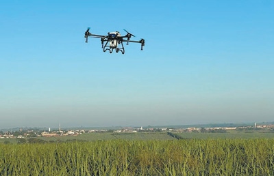這里是圣保羅州最大的甘蔗合作社之一。今年,這家合作社的田間管理方式與往年大不相同——一架無(wú)人機(jī)緩緩飛行到甘蔗地上方,進(jìn)行農(nóng)藥噴灑作業(yè)。