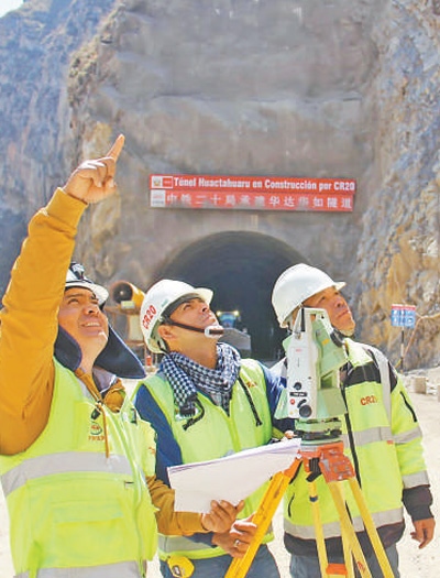 中秘建設(shè)者在中鐵二十局承建的秘魯安第斯國家公路施工現(xiàn)場(chǎng)。張 魏攝
