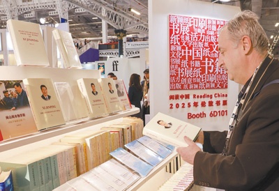 走進(jìn)奧林匹亞展覽中心主展館,總面積618平方米的中國(guó)展區(qū)內(nèi),紅色標(biāo)識(shí)格外醒目。來(lái)自中國(guó)50多家出版發(fā)行單位的圖書(shū)擺放錯(cuò)落有致,吸引了來(lái)自世界各地的出版界專業(yè)人士和廣大讀者駐足翻閱。在中國(guó)展區(qū)中心位置,擺放著《習(xí)近平著作選讀》第一卷、第二卷,《習(xí)近平談治國(guó)理政》第一至四卷,《擺脫貧困》等著作。