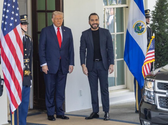 4月14日,美國總統(tǒng)特朗普在華盛頓白宮迎接到訪的薩爾瓦多總統(tǒng)布克爾。特朗普當天在白宮會見布克爾時對記者說,伊朗正在拖延與美國的伊核問題談判進程,可能面臨美國的“嚴厲回應(yīng)”。新華社記者胡友松攝