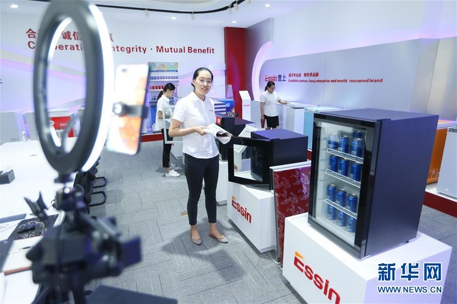 6月15日,在青島營上電器有限公司,營銷人員通過廣交會(huì)直播平臺(tái)推介出口到海外市場(chǎng)的冰箱。當(dāng)日,第127屆廣交會(huì)拉開帷幕。這是我國首次將廣交會(huì)整體性“搬上云端”。本屆廣交會(huì)會(huì)期10天,保持24小時(shí)不間斷,按16大類商品設(shè)置50個(gè)展區(qū),180萬件展品同期上線展示。新華社發(fā)(梁孝鵬攝)