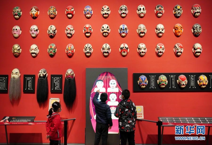 2月22日,小朋友在河北博物院《金聲天韻——河北梆子藝術(shù)展》展廳內(nèi)繪制電子臉譜 新華社記者牟宇攝