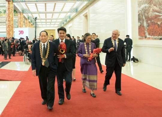 2019年9月29日,國家勛章和國家榮譽(yù)稱號(hào)獲得者在儀式后步出人民大會(huì)堂金色大廳。經(jīng)中共中央批準(zhǔn),中華人民共和國國家勛章和國家榮譽(yù)稱號(hào)頒授儀式于9月29日上午10時(shí)在北京人民大會(huì)堂隆重舉行。新華社記者王曄攝