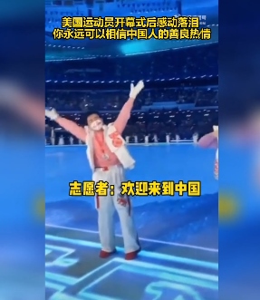 她用中文對(duì)場(chǎng)邊志愿者大喊“你好”