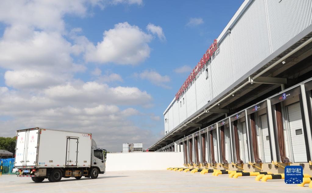 10月20日,空中俯瞰位于上海青浦區(qū)的名聯(lián)冷鏈第五屆進博會進口冷鏈?zhǔn)称房倐}(無人機照片)。新華社記者 方喆攝