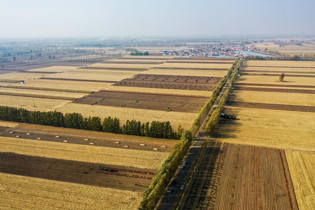 10月25日,在內(nèi)蒙古自治區(qū)通遼市開魯縣東風(fēng)鎮(zhèn),一些地塊上的玉米和紅干椒已經(jīng)收割結(jié)束。(無人機照片)新華社記者連振 攝