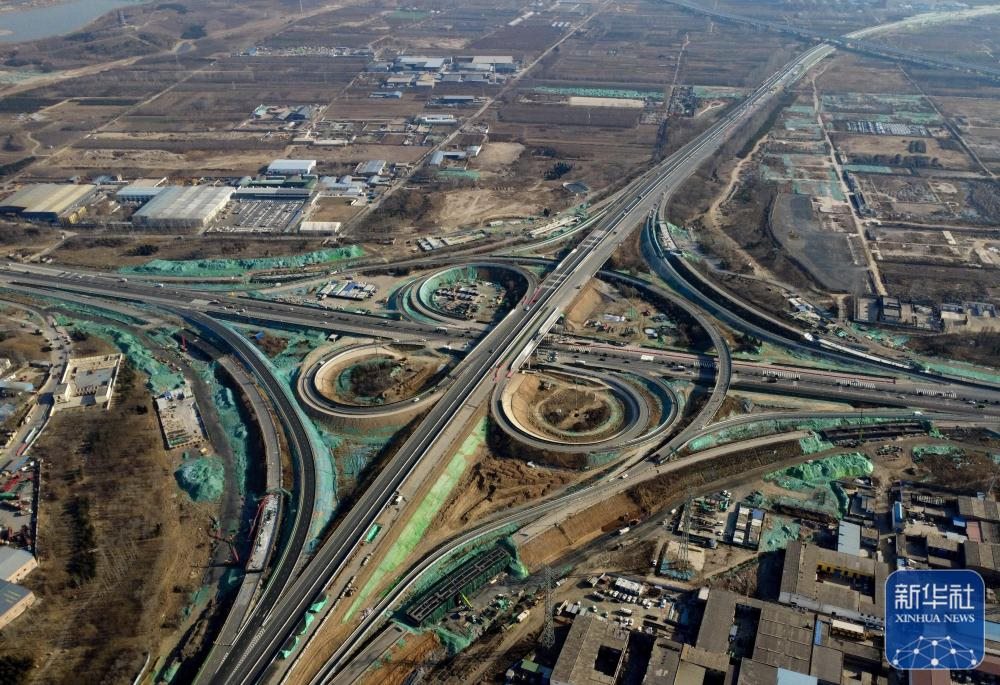 12月15日,工人在石家莊市北三環(huán)與復興大街互通工程建設(shè)工地施工(無人機照片)。 新華社記者 楊世堯 攝