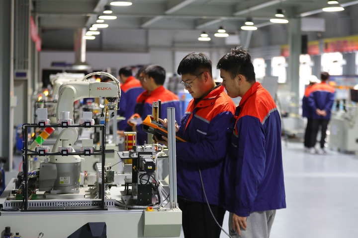 圖為11月2日,在沈陽工學(xué)院工業(yè)機器人實訓(xùn)中心,機器人工程專業(yè)學(xué)生進(jìn)行工業(yè)機器人基礎(chǔ)實踐應(yīng)用操作。近年來,沈陽工學(xué)院全力建設(shè)工業(yè)機器人實訓(xùn)中心,將車間搬進(jìn)校園。針對企業(yè)需求,學(xué)校開展機械加工等實操課程,有力提升學(xué)生就業(yè)水平。新華社記者 楊青 攝