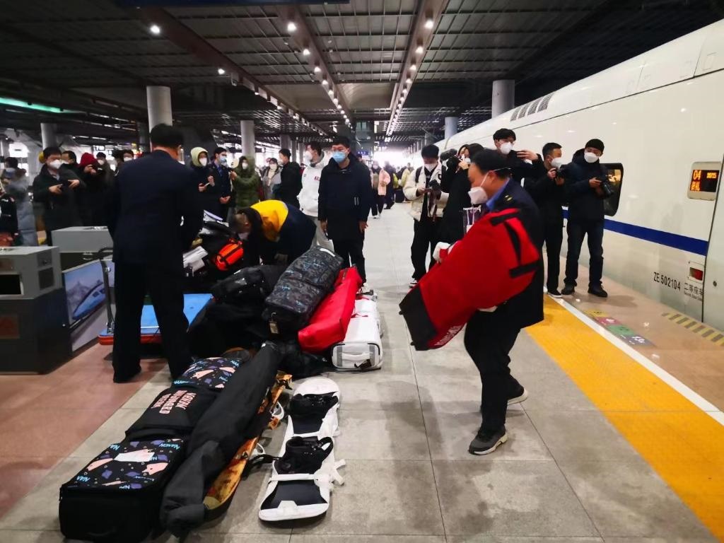 北京冬奧落幕,冰雪熱度不減。2023年元旦后,京張高鐵迎來北京冬奧會后首個滑雪季,前往張家口崇禮、太子城方向的滑雪游客數(shù)量不斷攀升。隨著春運大幕的開啟,京張高鐵除運輸返鄉(xiāng)探親的旅客外,還進一步完善了相關服務和運力調(diào)配,為滑雪游客出行提供便利。