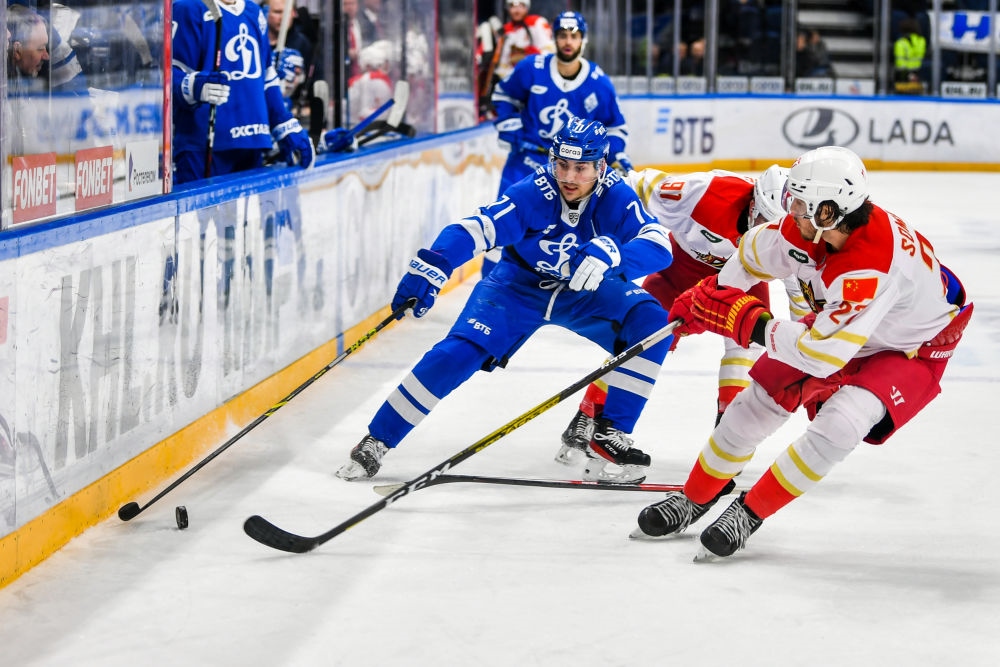 ↑2022年11月19日,中國北京昆侖鴻星隊(紅色)與俄羅斯莫斯科迪納摩隊在莫斯科舉行中俄體育交流年冰球友誼賽。兩國元首親自推動,延續(xù)互辦國家主題年的友好傳統(tǒng),繼“青年友好交流年”“媒體交流年”“地方合作交流年”“科技創(chuàng)新年”后,將2022年和2023年確定為“體育交流年”。