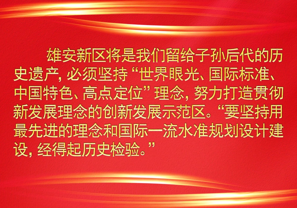 習(xí)近平總書(shū)記高瞻遠(yuǎn)矚謀劃推動(dòng)雄安新區(qū)規(guī)劃建設(shè),他強(qiáng)調(diào),要貫徹高質(zhì)量發(fā)展要求,創(chuàng)造“雄安質(zhì)量”,在推動(dòng)高質(zhì)量發(fā)展方面成為全國(guó)的一個(gè)樣板。