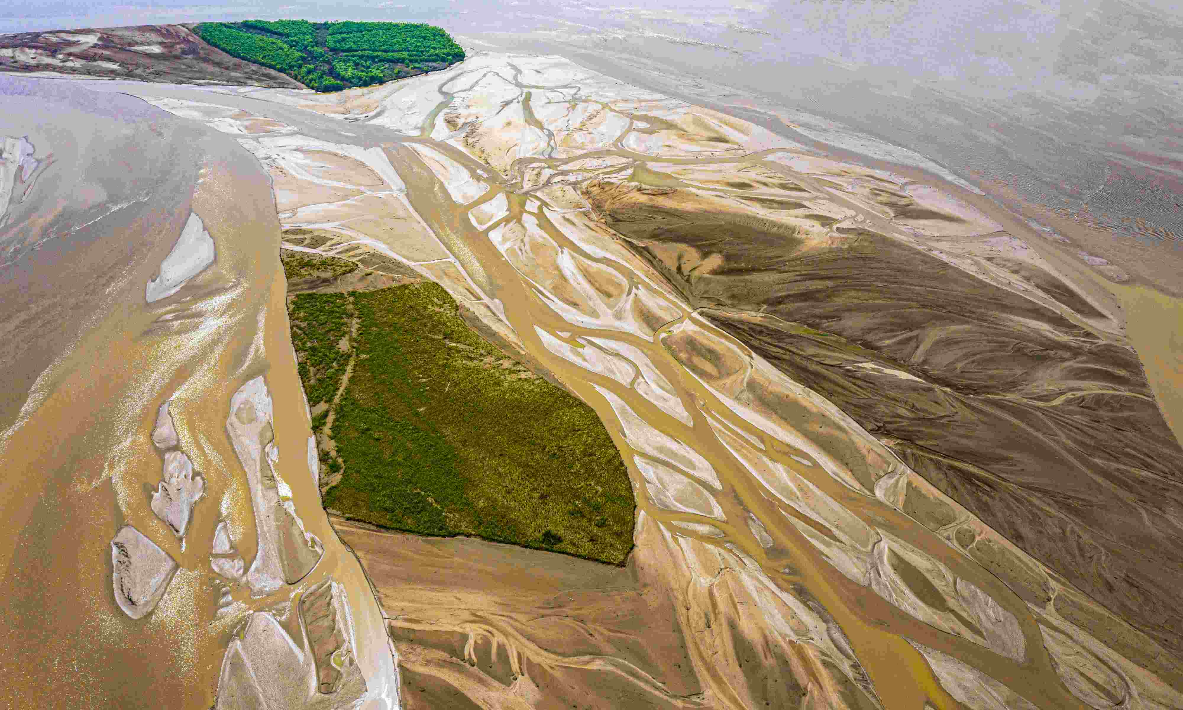 山西運(yùn)城:黃河河汊縱橫交錯(cuò) 宛若“大地血脈”
