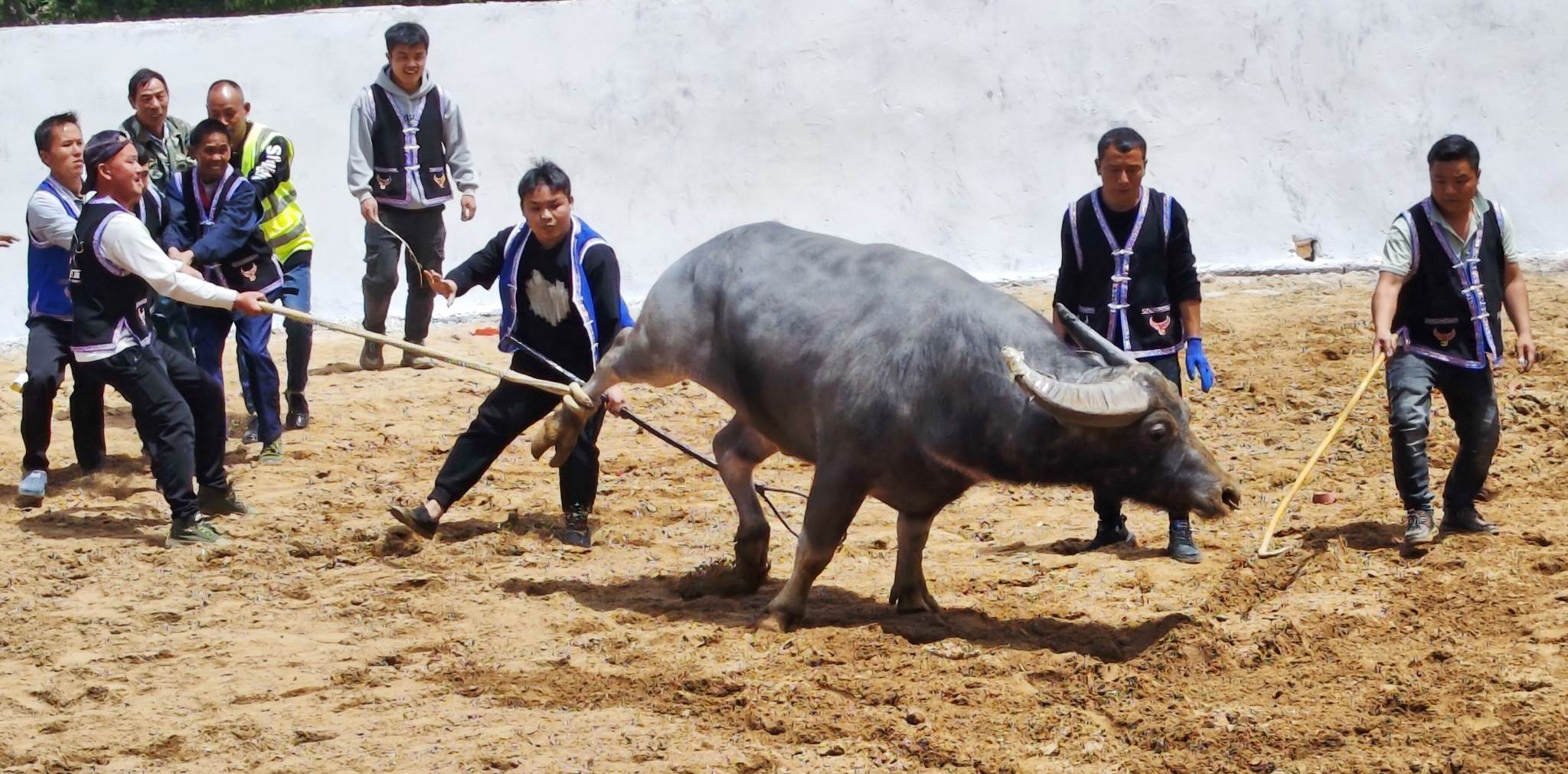 2023年4月29日,武漢,紫薇都市田園開展鄉(xiāng)村斗牛等具有特色的農(nóng)旅活動(dòng)。視覺中國
