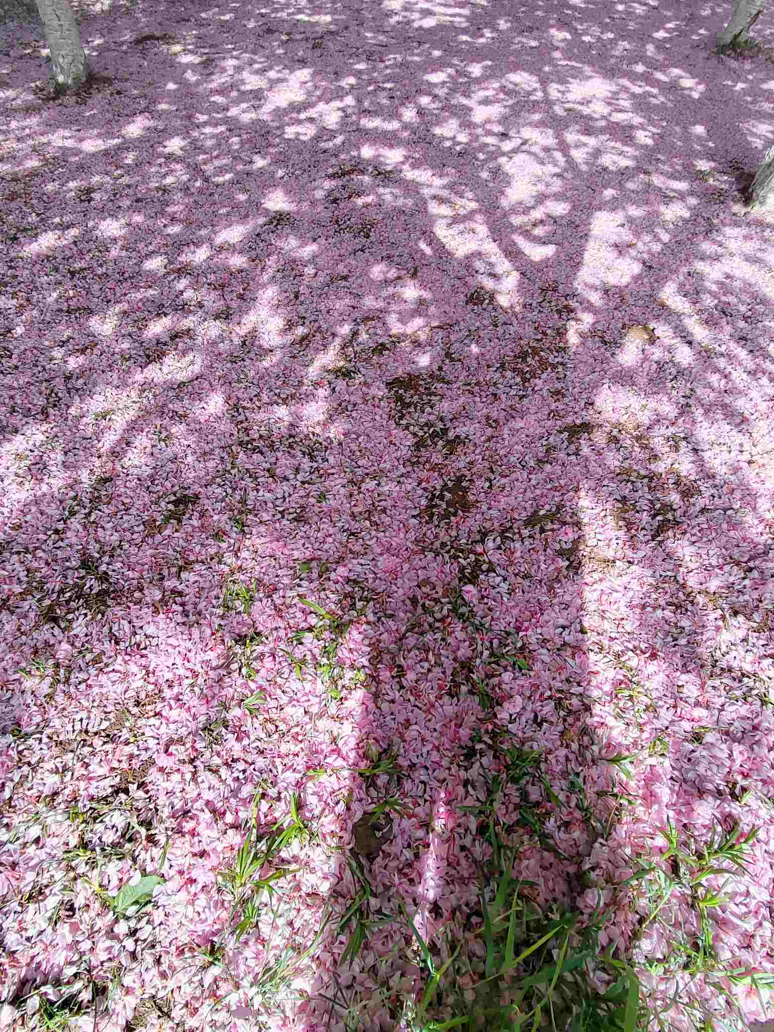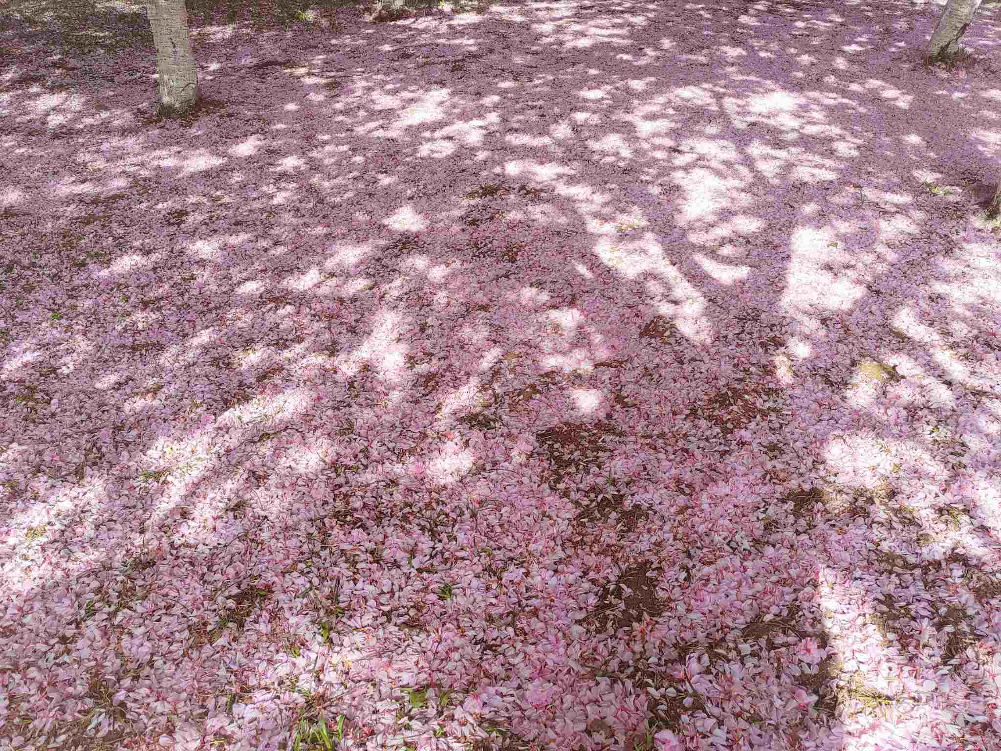 2023年4月29日,青島中山公園,經(jīng)歷風(fēng)雨之后,櫻花樹下落了厚厚一層花瓣。視覺中國