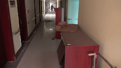 工作組在位于石家莊市新華區(qū)的河北仁愛醫(yī)養(yǎng)服務集團二樓,同樣發(fā)現(xiàn)一處被封堵的安全出口。且旁邊的告知函上已寫明,該處自2023年4月20日起進行裝修改造,工期為100天左右。