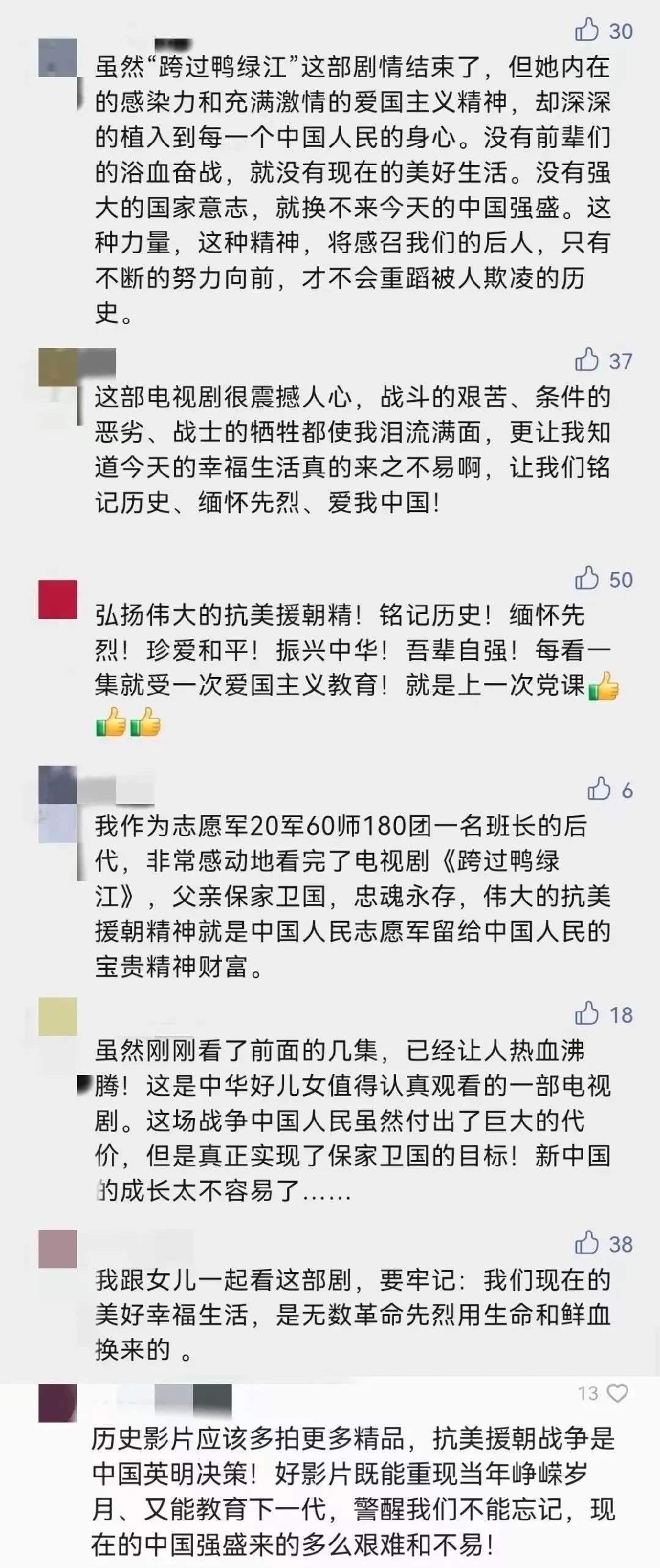 “抗美援朝絕對(duì)是值得紀(jì)念和謳歌的奇跡!這部電視劇是一部愛國(guó)主義教育的活教材!”這是網(wǎng)友對(duì)這部劇的評(píng)價(jià)。