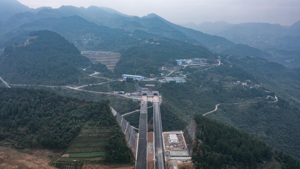 這是2022年10月13日拍攝的蘭州至海口國家高速公路重慶至遵義段(貴州境)擴(kuò)容工程項目桐梓隧道。當(dāng)日,桐梓隧道右幅順利貫通。新華社記者 陶亮 攝