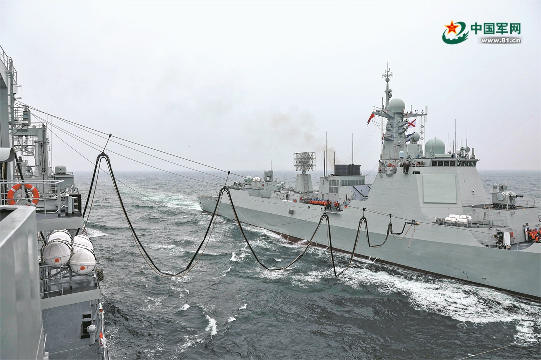 “海上補(bǔ)給部署!”千島湖艦抵達(dá)目標(biāo)海域不久,接到任務(wù)指令。官兵迅速確定航向、航速。與此同時,受補(bǔ)艦快速進(jìn)入補(bǔ)給陣位?!芭?!”隨著撇纜槍一聲脆響,引纜徑直飛向受補(bǔ)艦。不多時,??占芷鹨坏赖冷撍鳎瑑膳炘诓ǚ謇斯乳g并駕齊驅(qū)。補(bǔ)給口令下達(dá),兩艦官兵默契配合、精準(zhǔn)對接,快速展開補(bǔ)給作業(yè)。