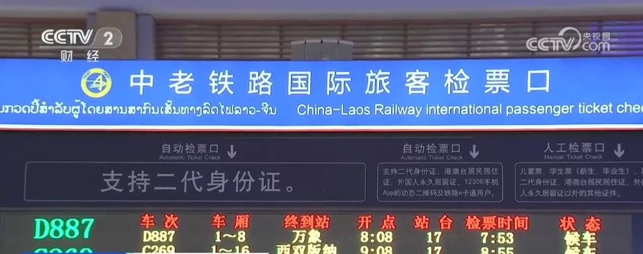記者 范紫霄:現(xiàn)在是中午12時(shí)30分,這趟列車已經(jīng)到達(dá)了磨憨站,也是這趟列車在我國(guó)境內(nèi)的最后一站??缇城巴蠐氲穆每托枰獢y帶全部行李下車辦理通關(guān)等一些相關(guān)手續(xù),然后繼續(xù)返回這列我們乘坐的D887次列車,通過畫面中的友誼隧道,跨越國(guó)境,在今天傍晚6時(shí)38分抵達(dá)老撾首都萬象。