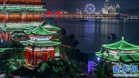 南昌文化地標滕王閣夜景美輪美奐。新華網(wǎng)發(fā)
