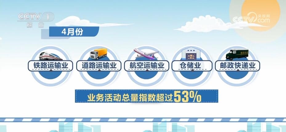 中國物流與采購聯(lián)合會5月4日公布,4月份中國物流業(yè)景氣指數(shù)為53.8%,繼續(xù)保持在擴張區(qū)間。部分行業(yè)的業(yè)務(wù)活動總量指數(shù),保持在50%以上擴張區(qū)間。其中,鐵路運輸業(yè)、道路運輸業(yè)、航空運輸業(yè)、倉儲業(yè)和郵政快遞業(yè)超過53%。