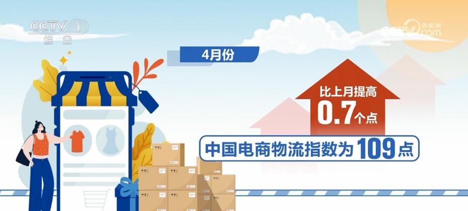 在國內(nèi)消費恢復(fù)帶動下,電商物流指數(shù)也呈現(xiàn)連續(xù)上漲態(tài)勢。4月份,中國電商物流指數(shù)為109點,比上月提高0.7個點。電商物流總業(yè)務(wù)量和農(nóng)村電商業(yè)務(wù)量實現(xiàn)連續(xù)4個月上漲,電商物流總業(yè)務(wù)量增幅擴大,農(nóng)村電商總業(yè)務(wù)量增速重回20%以上。