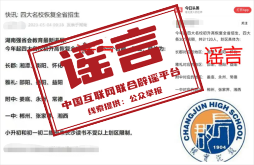 謠言:長沙“四大名校”初升高恢復(fù)全省招生?